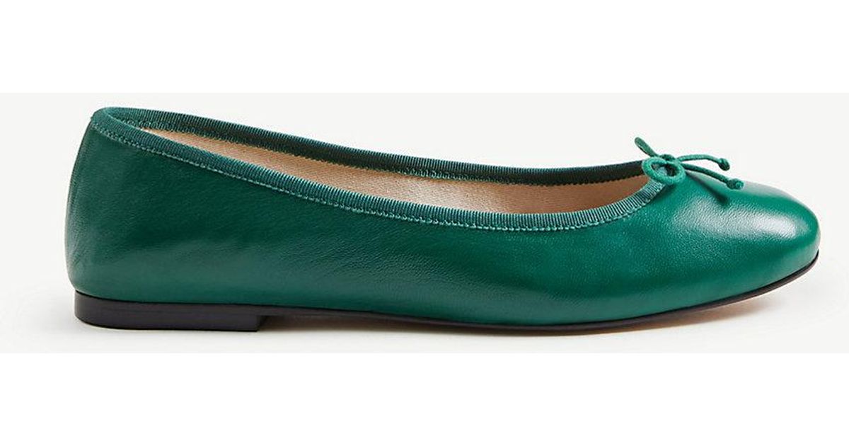 green leather ballet flats