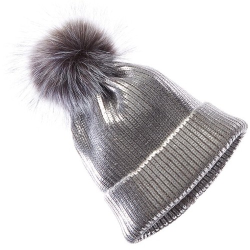 metallic beanie with pom pom