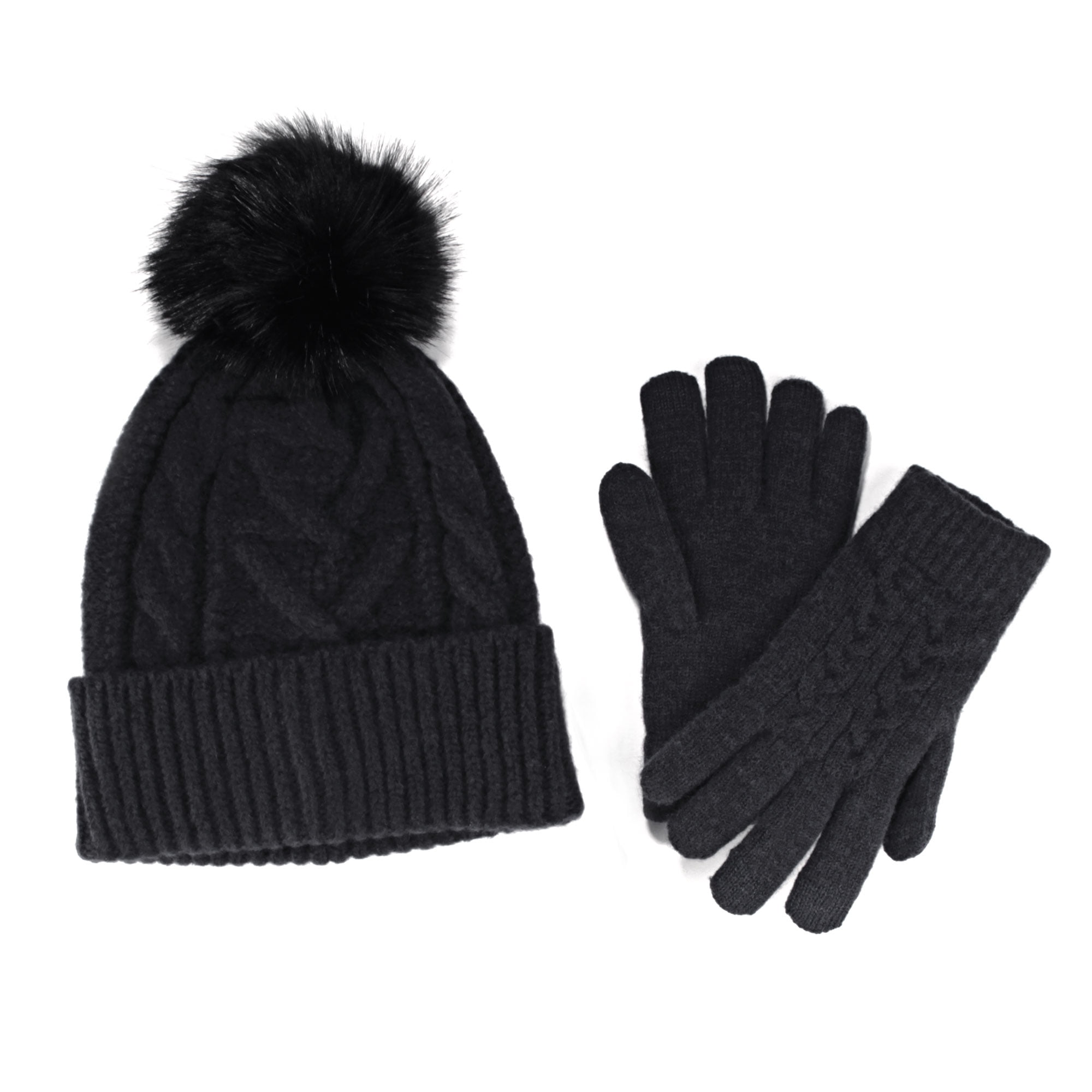pom pom beanie and gloves